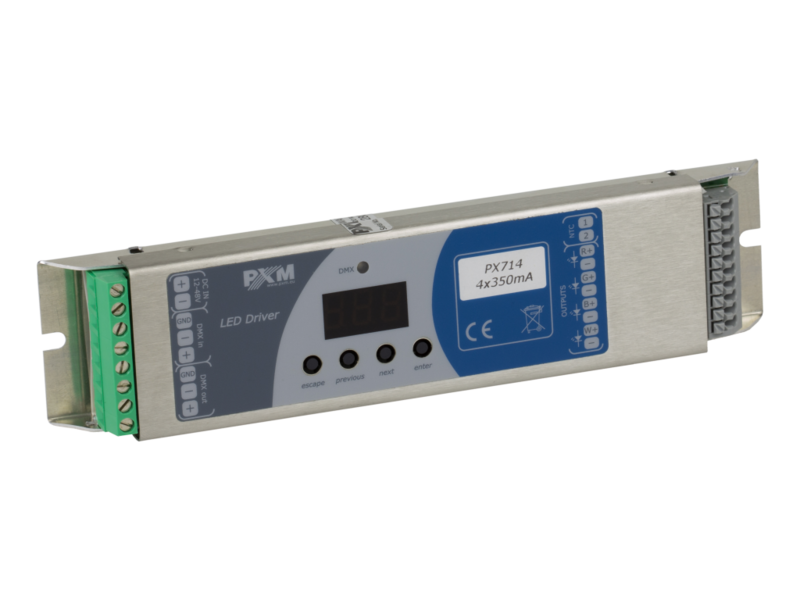 | PX714 | 4 | 350mA | 12-48V | Metall | Menü-Funktionen, RDM |