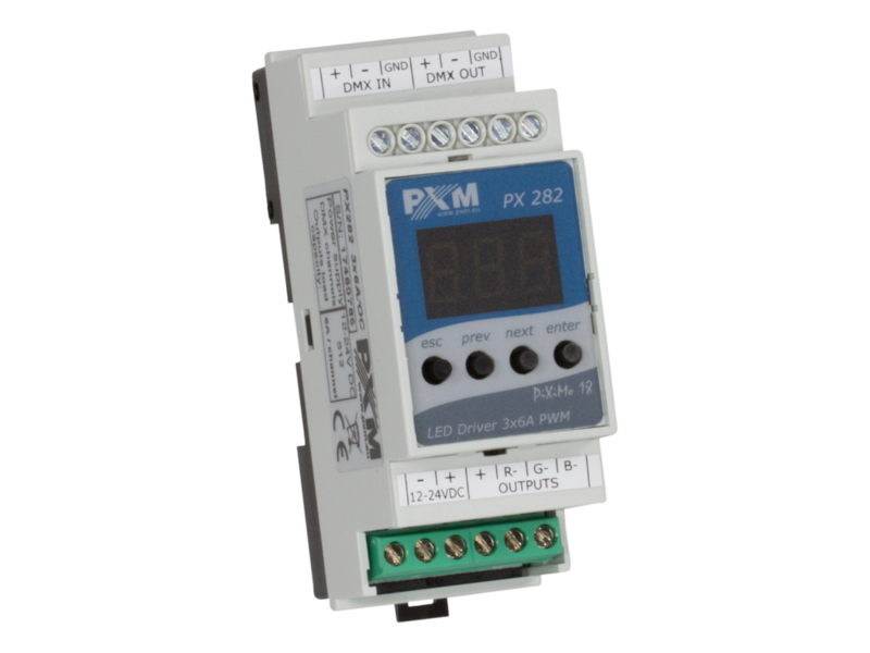 | PX282 | 3 | 6A | 12-24V | DIN T-35 | Menü-Funktionen, RDM |